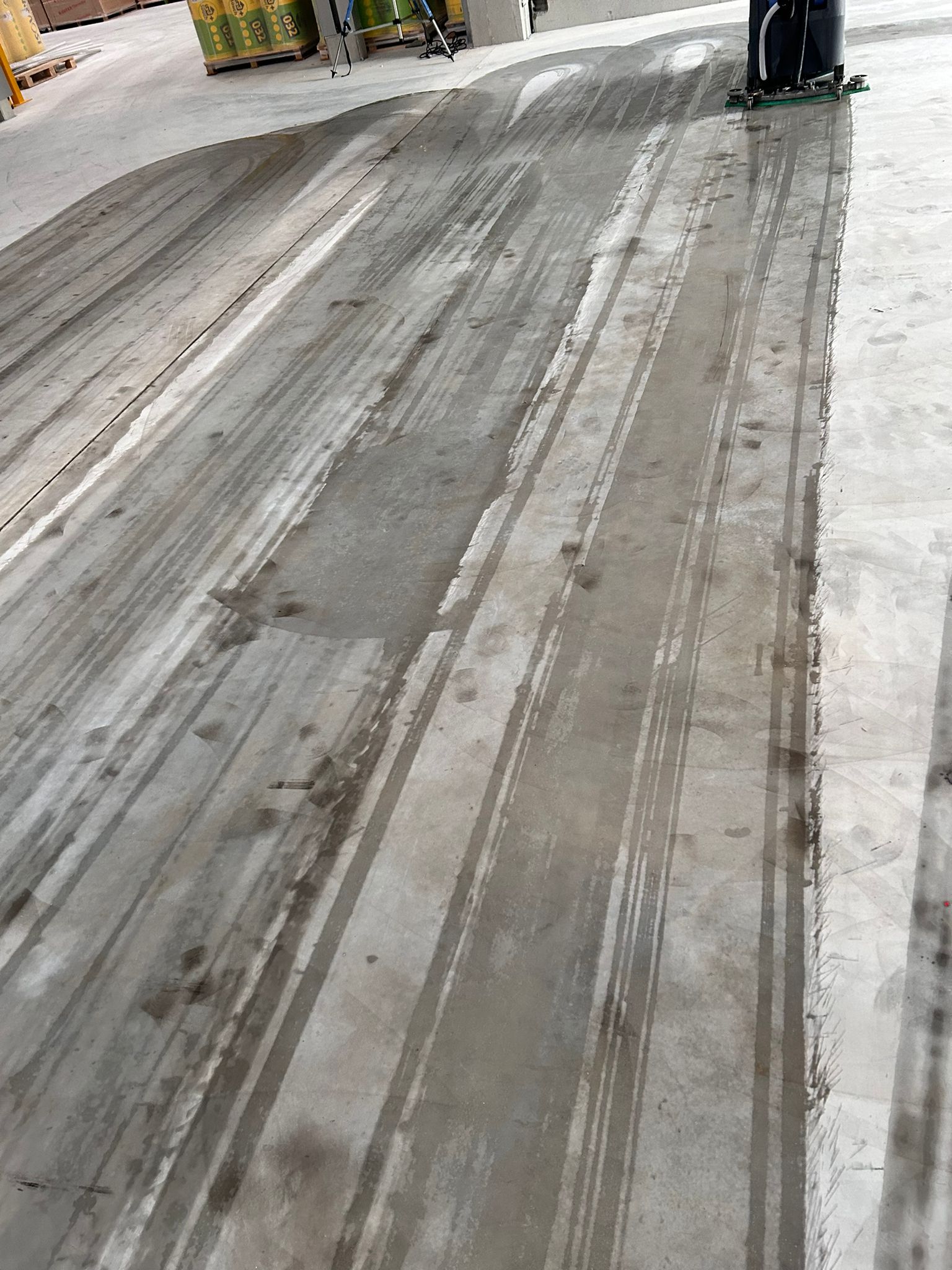 Neben der maschinellen Bodenreinigung übernahmen wir die gründliche Entfernung hartnäckiger Verschmutzungen und bereiteten die Halle optimal für den laufenden Betrieb vor.